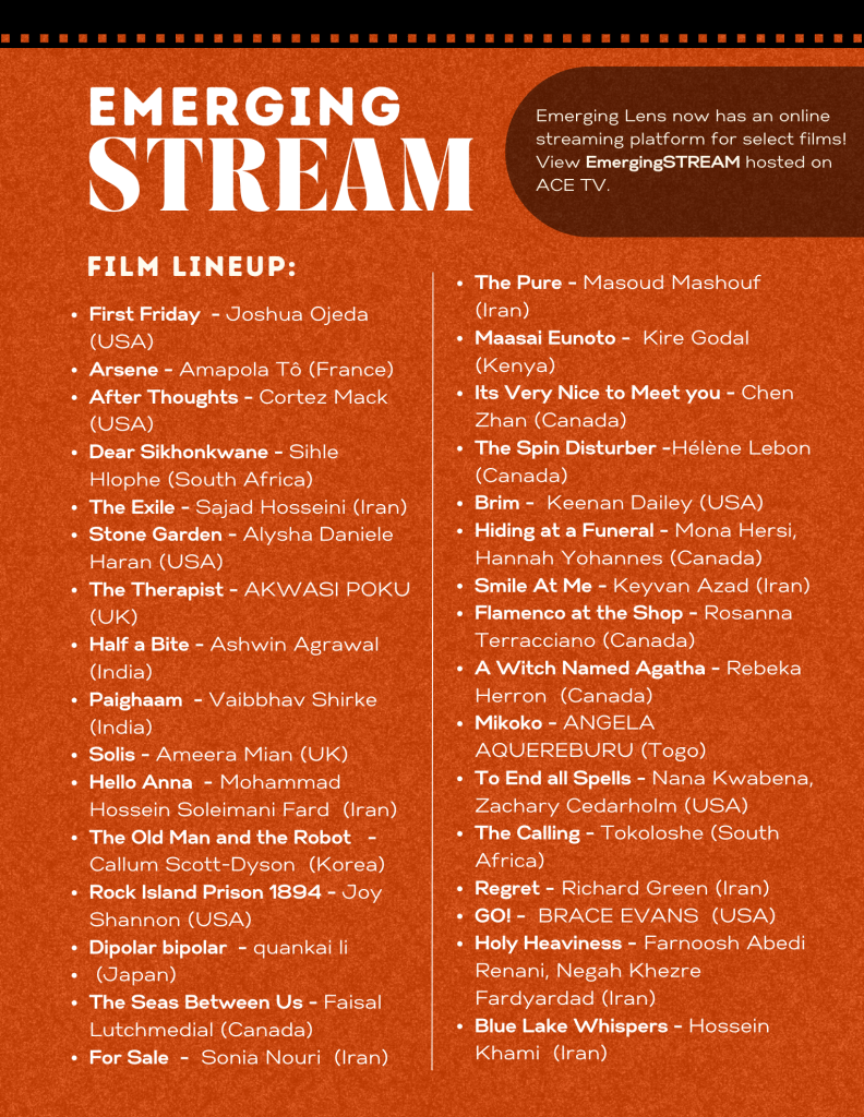 • Mission: The Emerging Lens Cultural Film Festival champions equity in the arts by providing space for BIPOC creatives to explore identity, culture, and community through film, storytelling, and performance.